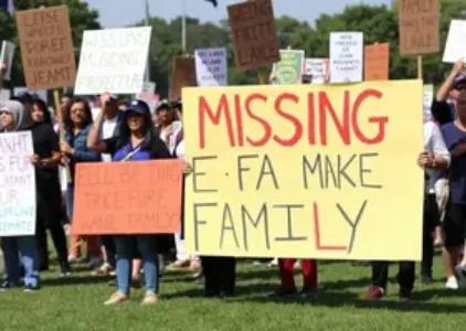 Manifestantes pedem solução imediata para o caso da família Aguiar desaparecida.